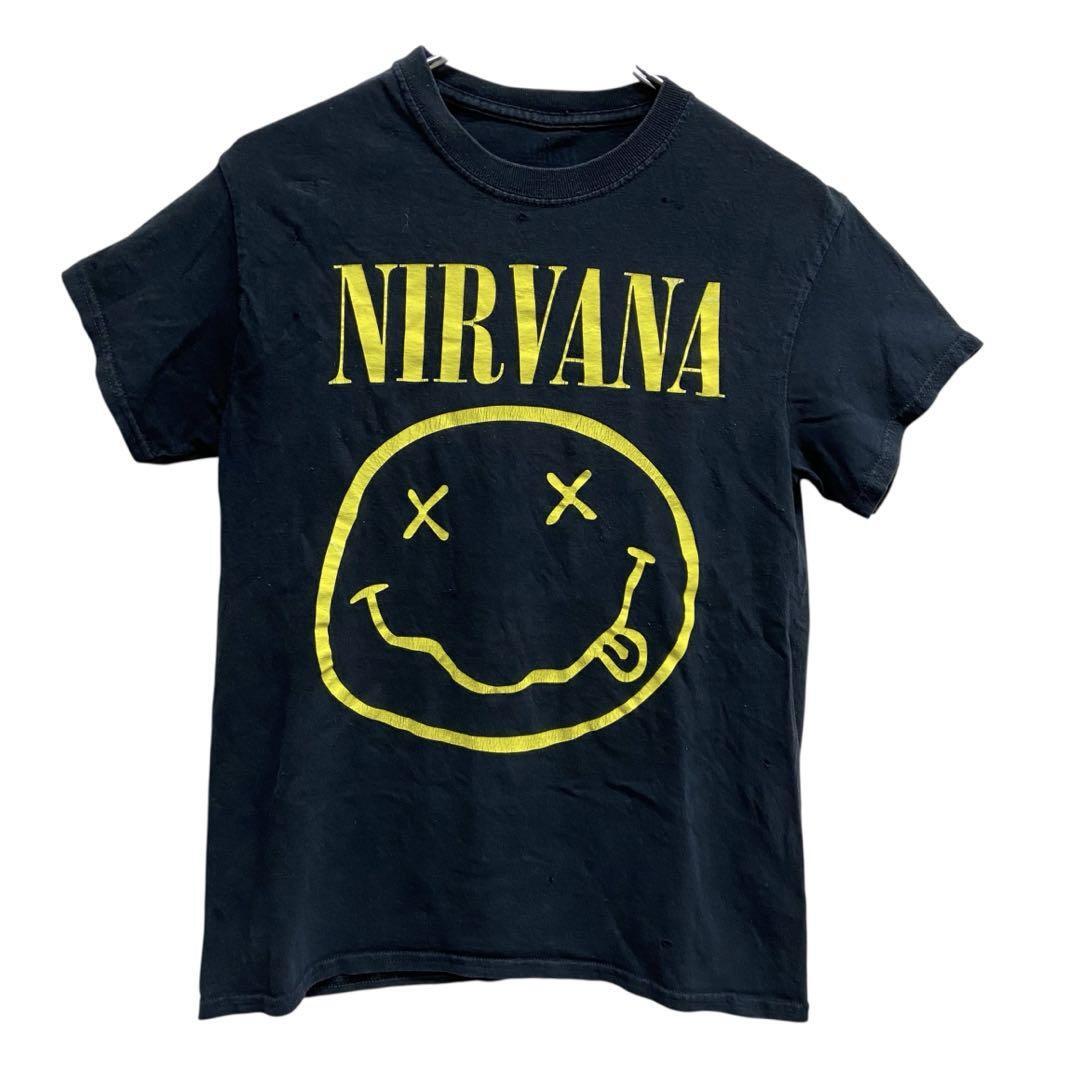 - ニルヴァーナ スマイルロゴ バンドTシャツ 黒 S ユニセックス【4636】
