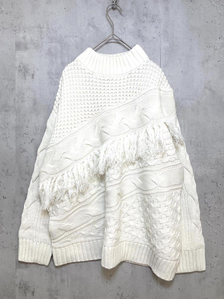 > AMERICAN HOLIC アメリカンホリック HA17L2C0590 斜めケーブルフリンジニット プルオーバー sizeL/アイボリー ◆■