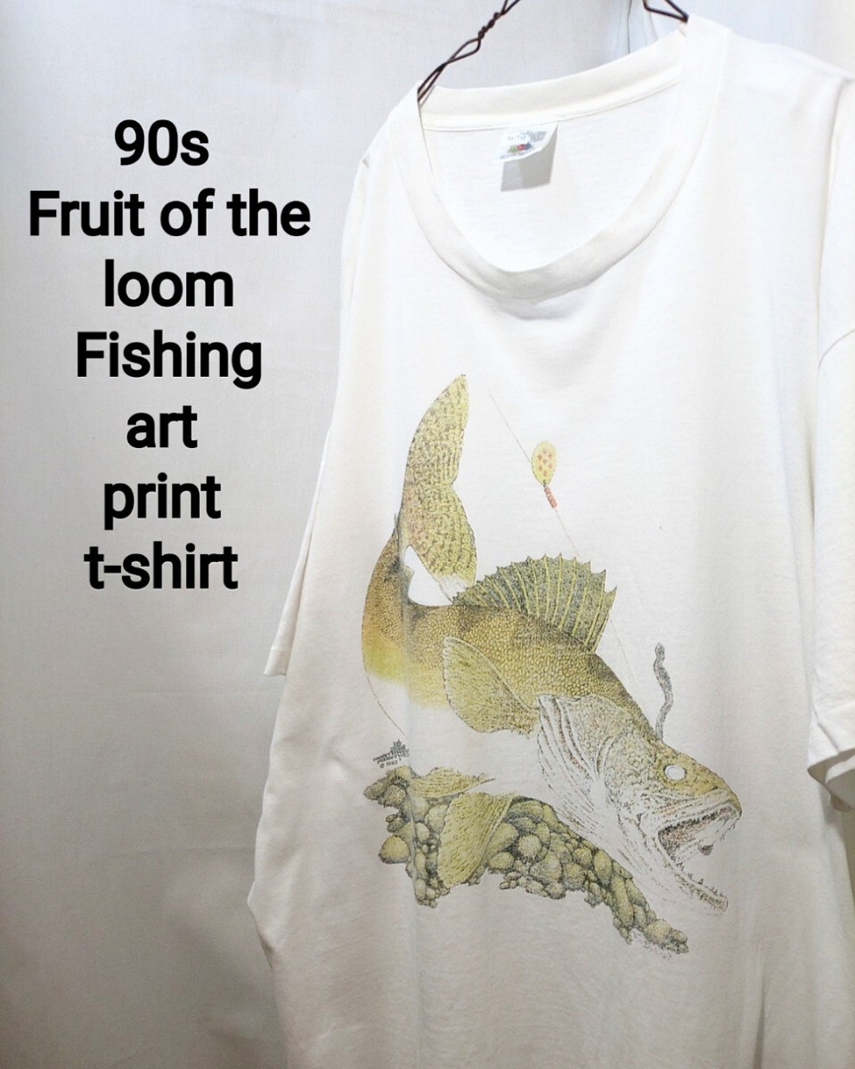 - Vintage Fruit of the loom Fishing art print t-shirt 90s フルーツオブザルーム フィッシング アート Tシャツ カナダ製 釣り ビンテージ