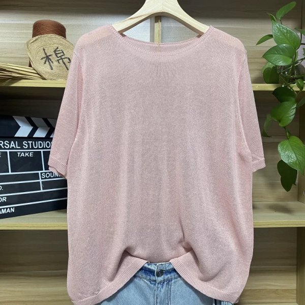 > 25zy サマーニット シンプル トップス 高質 ラフ 麻タッチニット チュニック ナチュラル 麻混 サラサラ 涼感 クールネック5