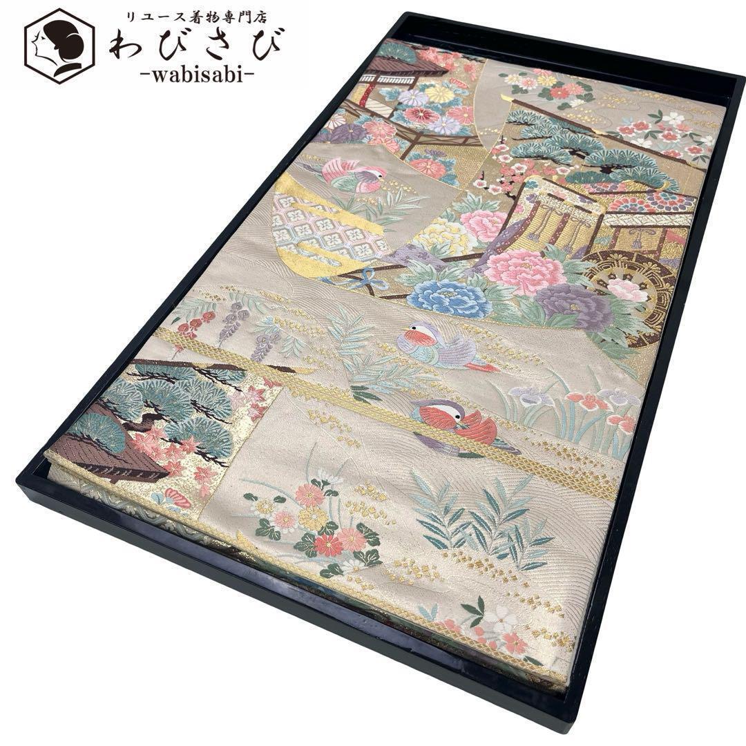 - 袋帯 九百錦 花鳥華飛鶴 本金二重箔 金糸 O-4032 着物 きもの kimono 和服 和装 中古 リサイクル着物 【送料無料】