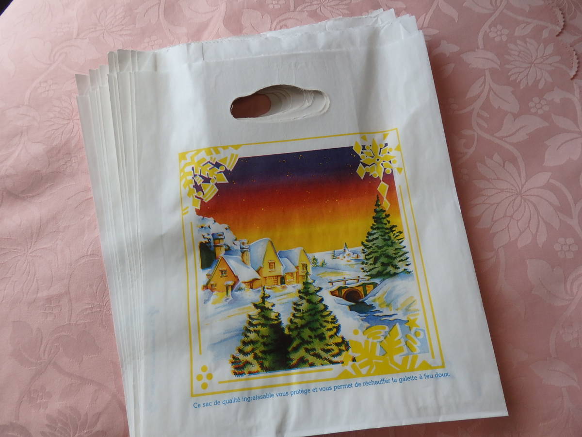- 紙好きさんへ~ ☆フランス 冬の景色 珍しいマチ付き手提げ紙袋 10枚