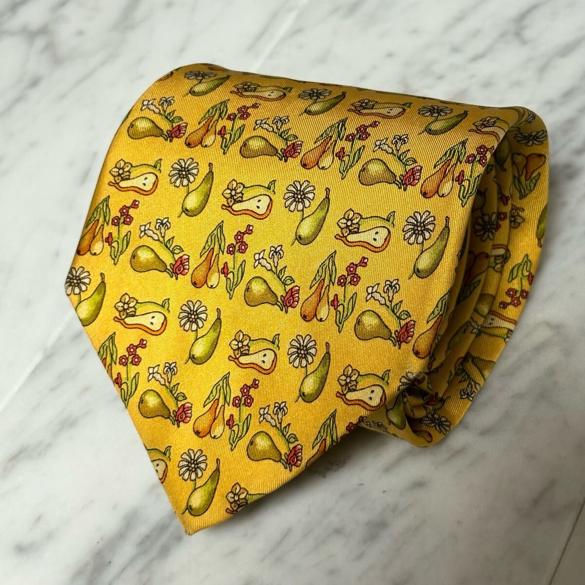 - 999円~ Ferragamo ネクタイ イエロー 果物柄 ラフランス (YW4)
