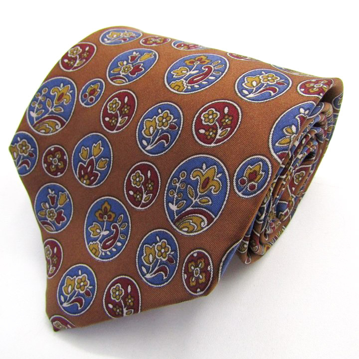 > ヴァレンチノ ブランド ネクタイ 総柄 ドット 小紋柄 花柄 シルク イタリア製 PO メンズ ブラウン Valentino
