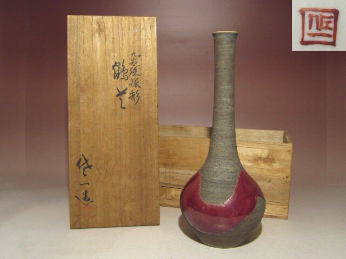 - ※即決※ 松本佐一 久谷無形文化財 鶴首花入★共箱★u590