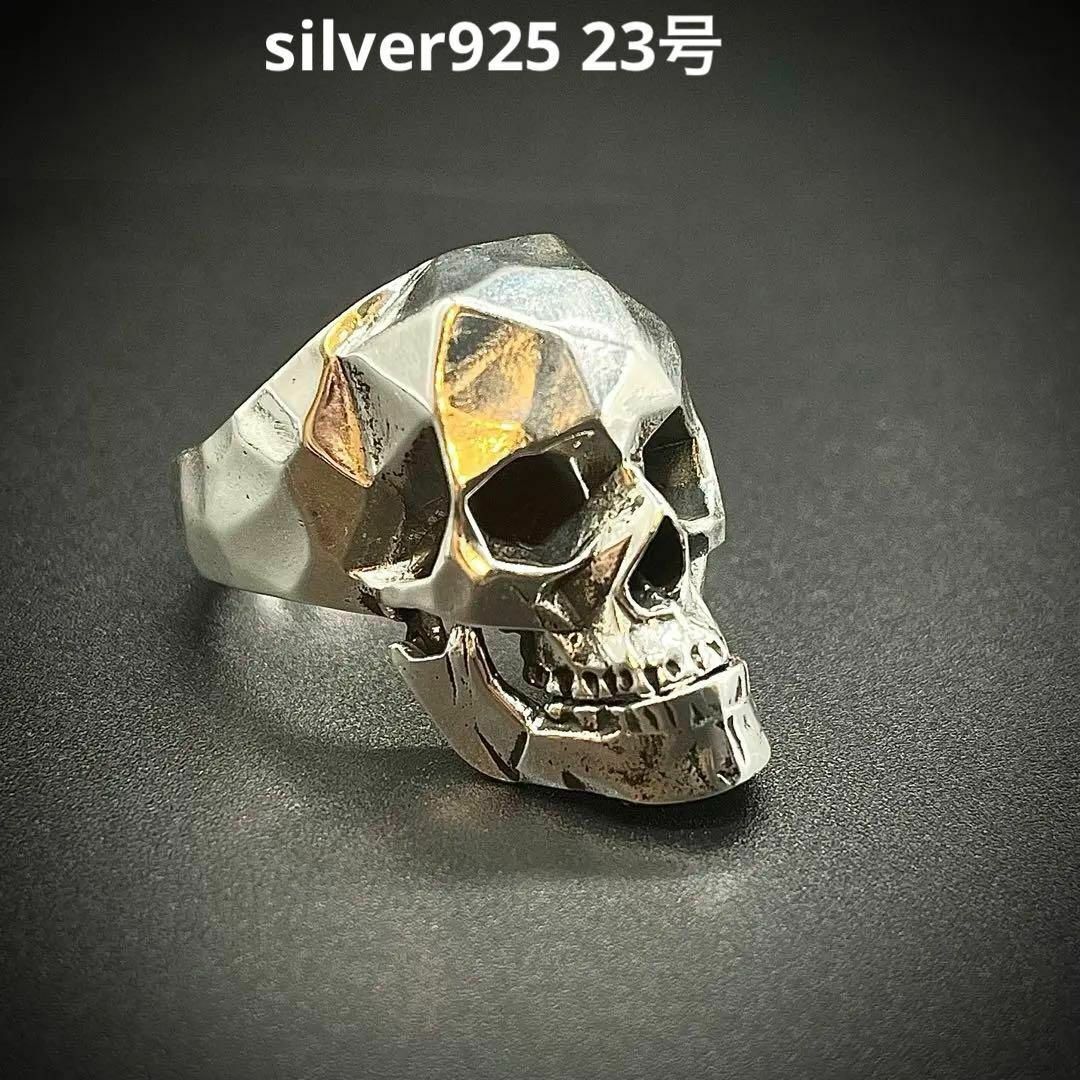 - スカルリング 23号シルバー925 顎が動く 鏡面仕上げ 指輪 刻印 メンズ silver925 髑髏 重厚ハード系アクセ ユニセックス アクセサリー