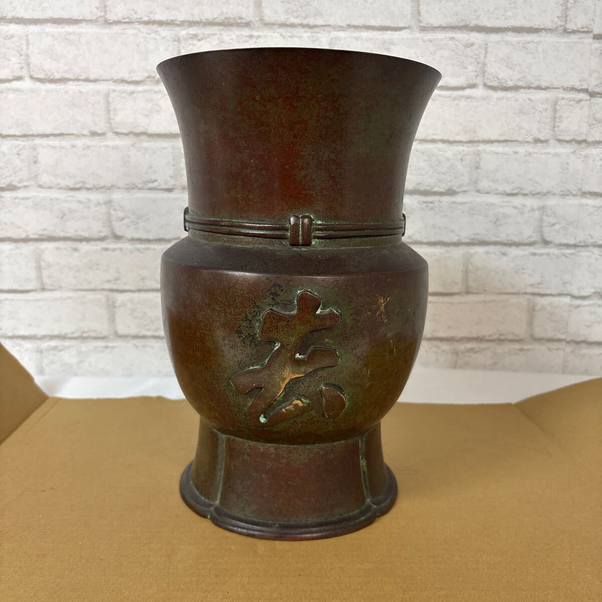 - アンティーク風銅製花瓶(花器) 漢字装飾付き インテリア・骨董品 青銅 中国古玩 中国美術 花入 古物 時代物生花 壺 置物 香炉ふ