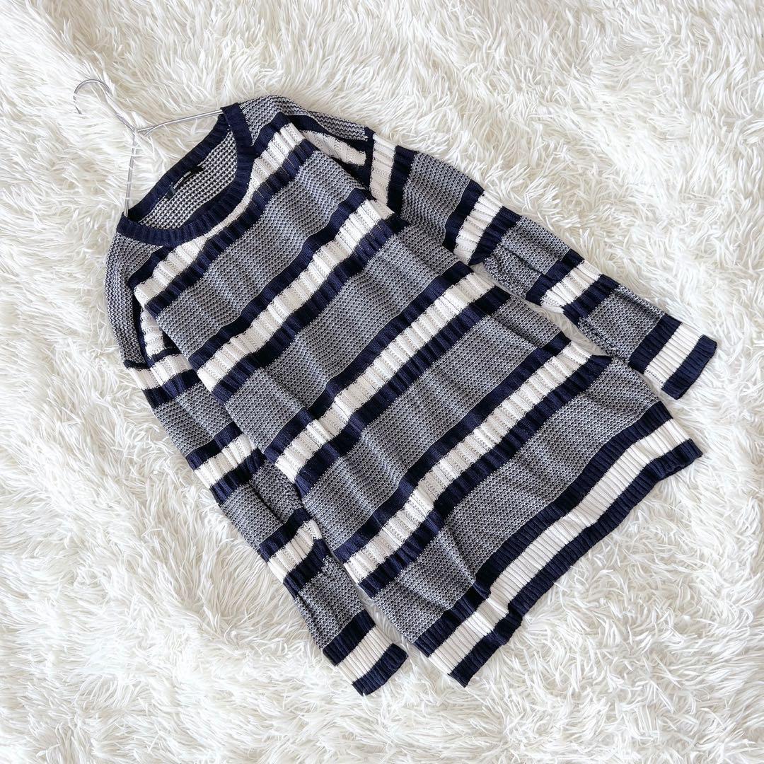- 《メイソングレイ》 (2) ボーダーニットプルオーバー ラウンドネック 綿麻混