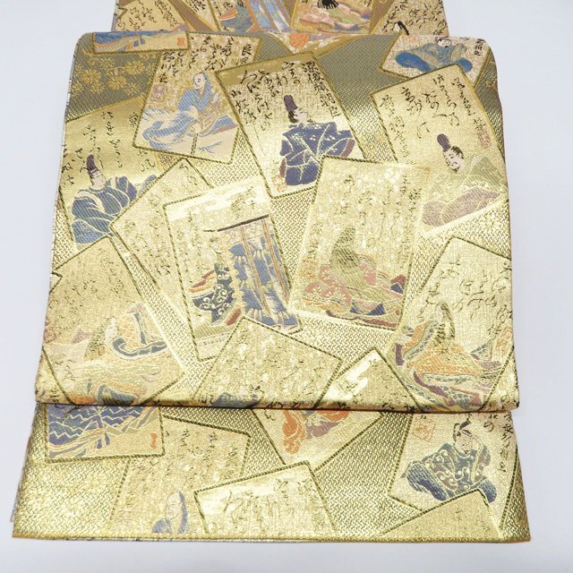 - 丸帯 未使用 正絹 フォーマル 仕立て上がり 両面全通 百人一首 かるた 箔糸 きもの北條 A1235-5