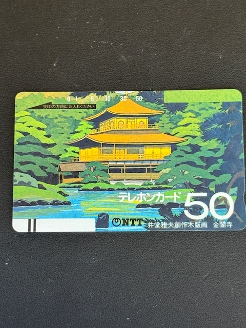 - 未使用 50度数 金閣寺 井堂雅夫 創作 木版画 テレホンカード テレカ