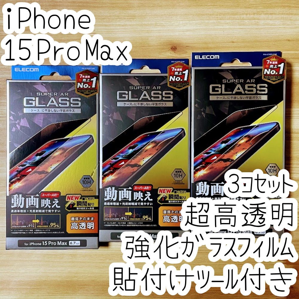 - 3個 iPhone 15 Pro Max 強化ガラスフィルム 高硬度10H 液晶保護 動画映え 高透明 ケースに干渉しない エッチングAR加工 貼り付けツール 801