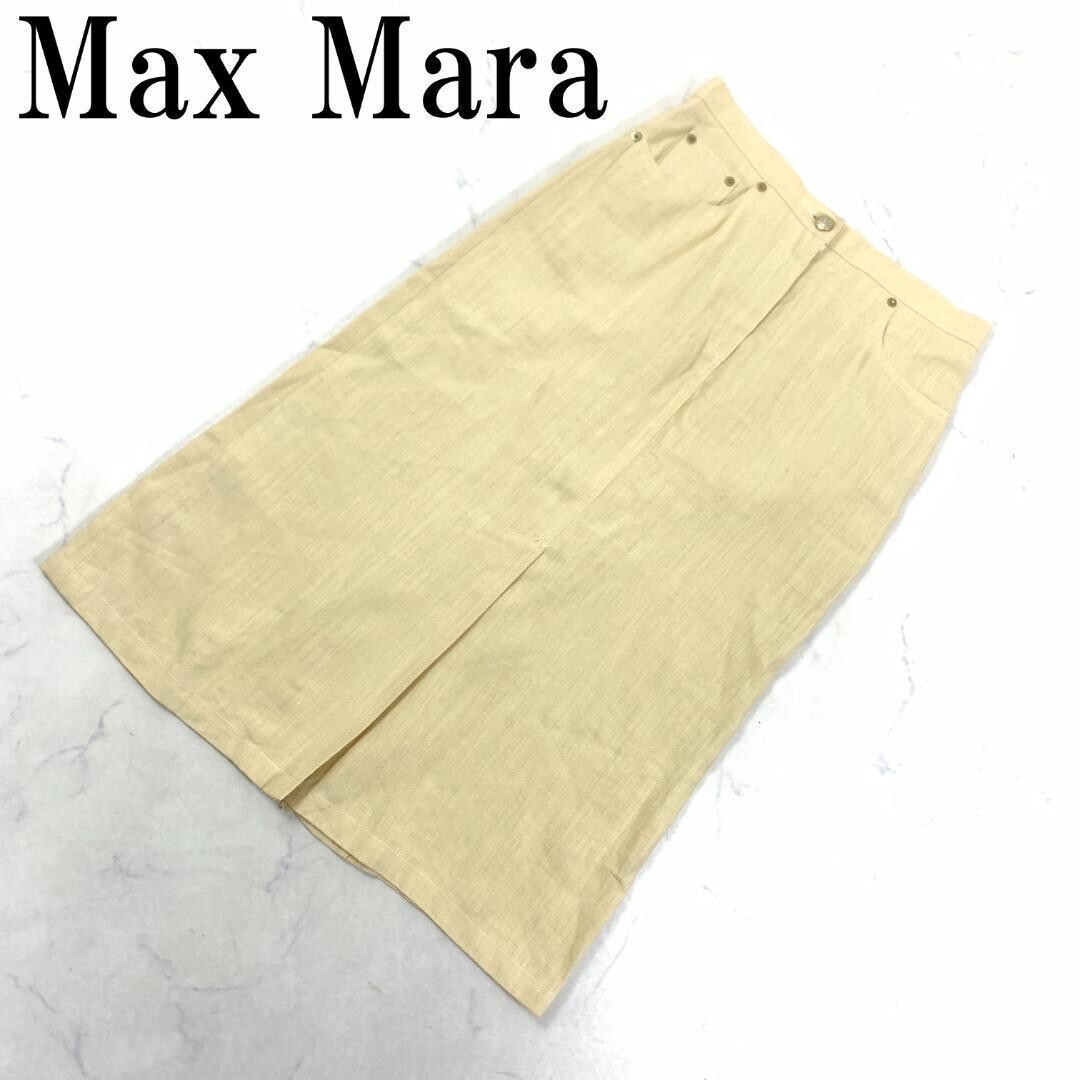- LA6863 マックスマーラ リネン100% ロングスカート Max Mara センタースリット 麻100%ベージュ 38