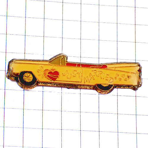 - ピンバッジ・ハート新婚さんハネムーンのオープンカー車◆フランス限定ピンズ◆レアなヴィンテージものピンバッチ
