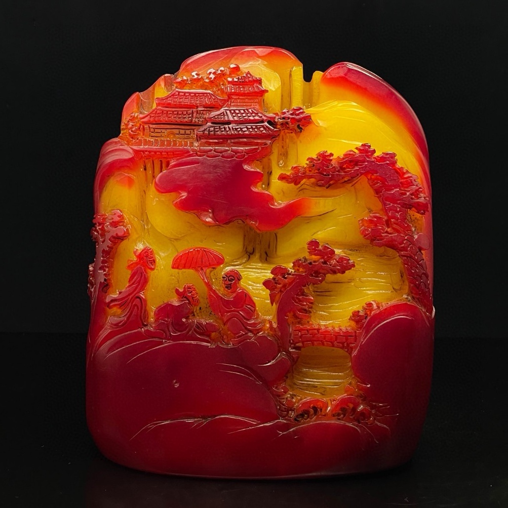 - 旧蔵 【清代篆刻家 黄士陵】寿山石 田黄級 紅田黄石 印鑑 天然石 手彫 篆刻 古印材 極細工 中国古玩 骨董品 古美味 207