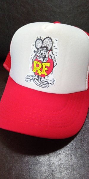 - 即決★シングルナイロンメッシュキャップ【ラット フィンク R.F.】プリント レッド