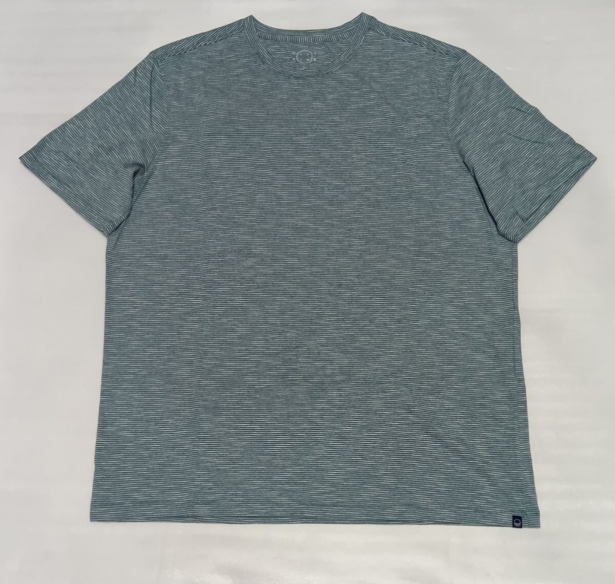 - ☆EVENTIDE TEE サイズL半袖TシャツREGULAR FIT伸縮機能ストレッチよこしまLINEグリーン緑系ティー洗濯済ブラック黒色タブ イーブン タイド