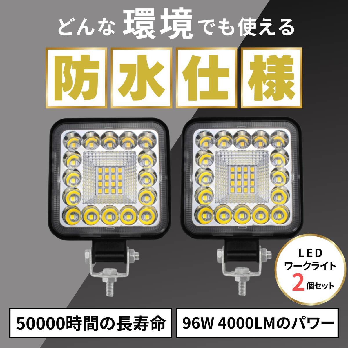 > Quriest LED ワークライト 作業灯 96W 2個セット 防水 防塵 高耐久 IP67 工事用 照明 補助灯 オフロード車 スポット 省エネ 高輝度 高照度