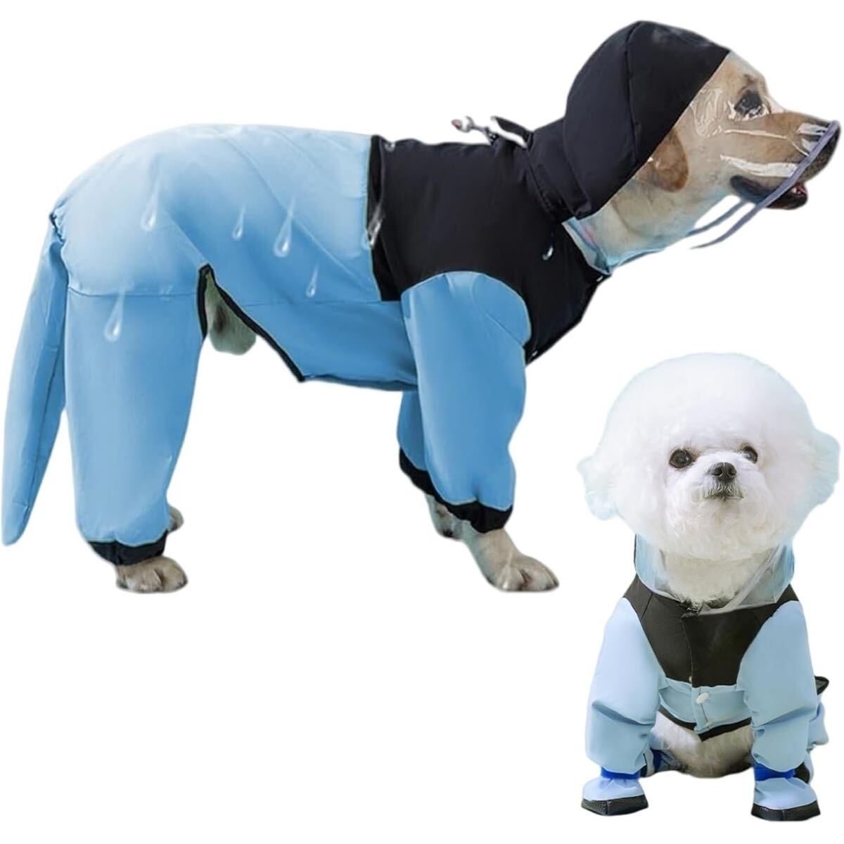 - 1円スタート 犬 レインコート 全身を水から防ぐ機能があり、丈夫で、 帽子付き 耐久性のある材料を使用 (L ブルー(4.5-6KG))