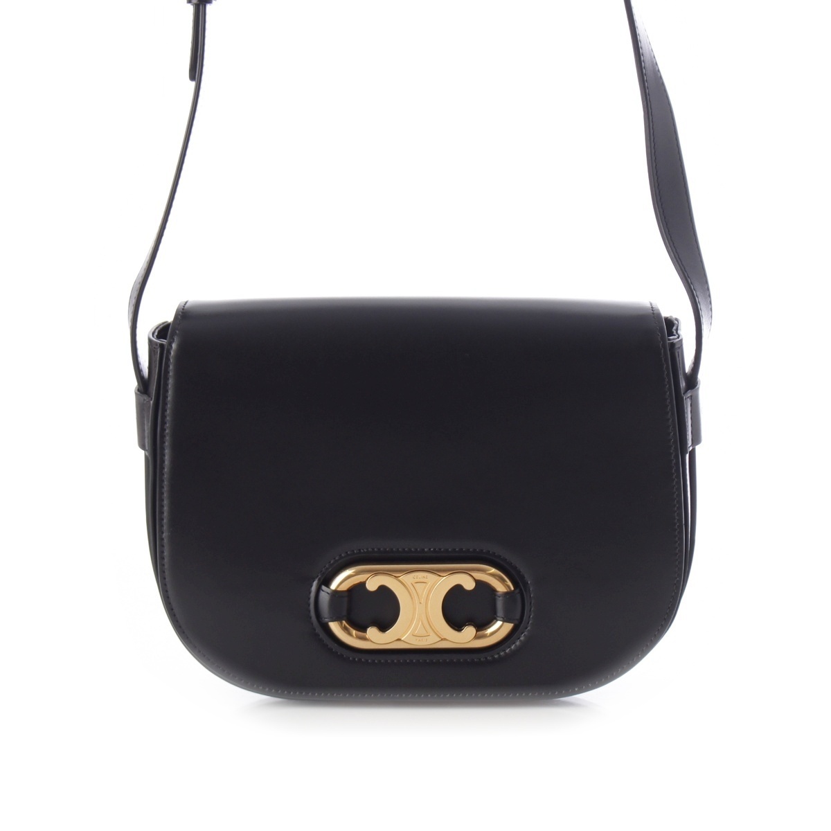 - セリーヌ マイヨン トリオンフ ミディアム レザー ショルダーバッグ ブラック【中古】