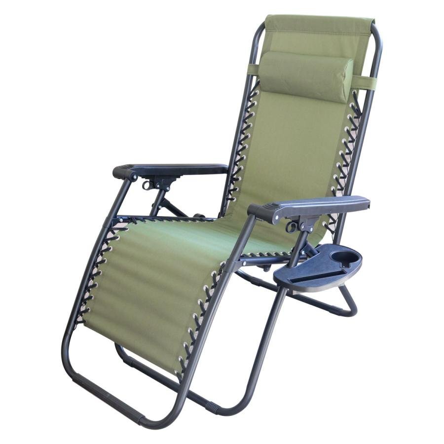 - 【送料無料】折りたたみ式 リクライニングチェア ★サイトテーブル付 椅子 キャンプ BBQ アウトドア 耐荷重149Kg グリーン