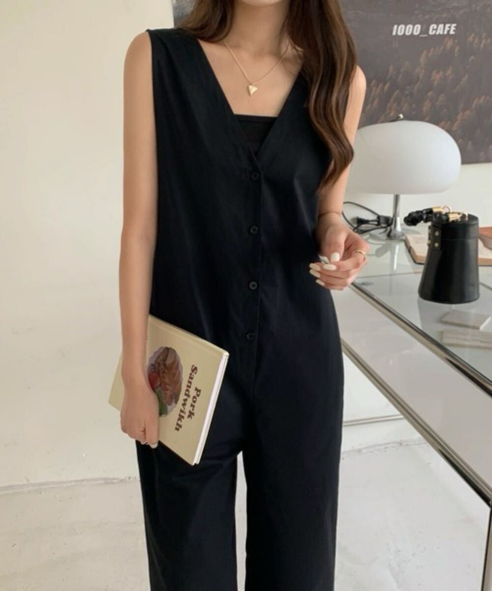 - emi+ 送料無料◆低身長さん向け◆サロペットオールインワンつなぎ黒ブラック綿コットン100%Sサイズ◆化学物質過敏症の方◆無香料
