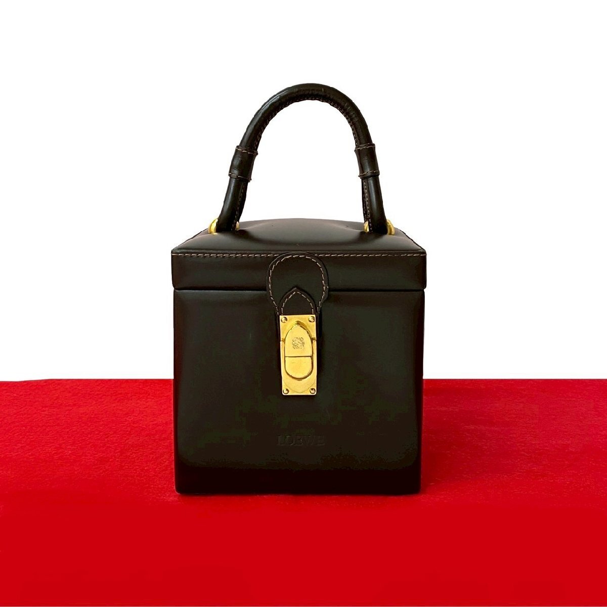 > 極 美品 希少品 LOEWE ロエベ ヴィンテージ アナグラム ロゴ 金具 レザー 本革 ミニ ハンドバッグ バニティバック ブラウン 茶 69183