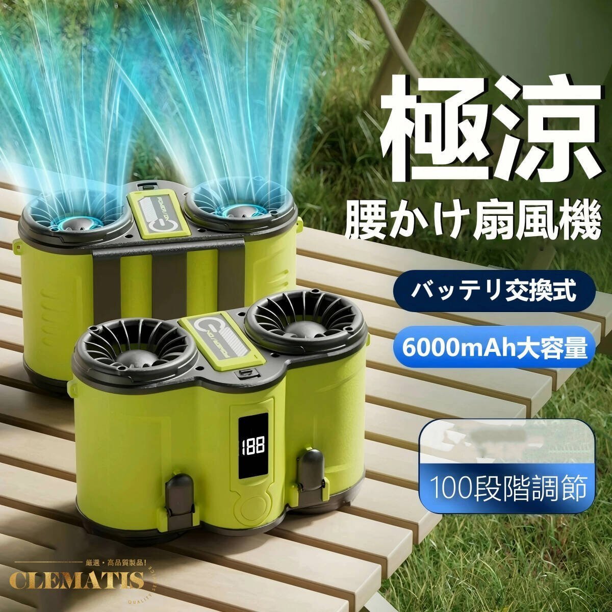 - ベルトファン 100段階風量 腰掛け扇風機 強力 冷風機 dcモーター 6000mAh大容量 大風量 静音 小型 扇風機 首掛け 高温対策 熱中症対策