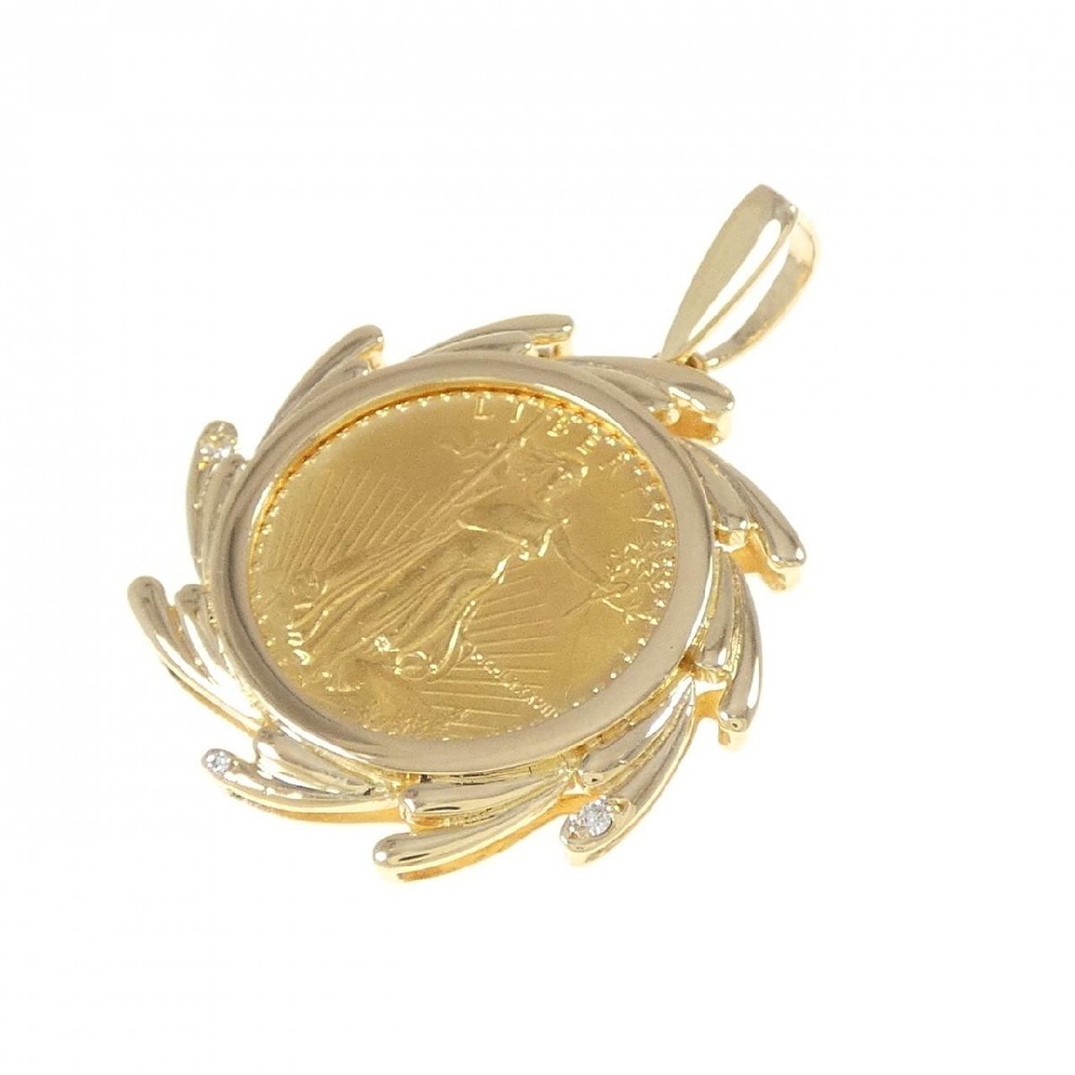 - K18YG(枠) ダイヤモンド コイン 0.02CT ペンダント