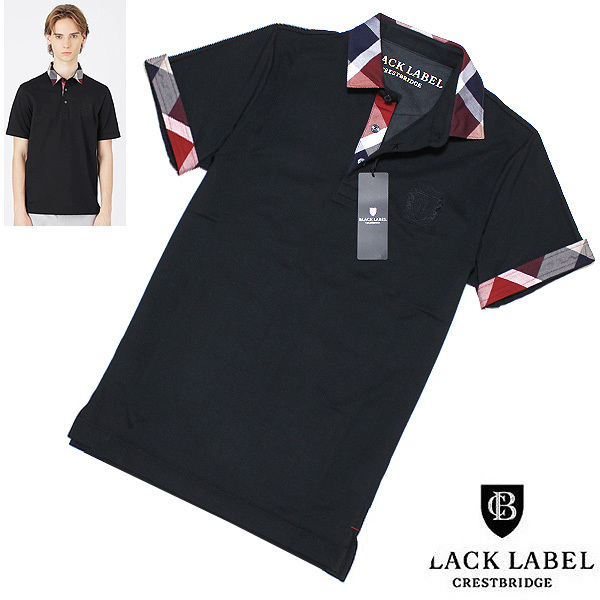> 送料無料!定1.7万 新品 M(2)ブラックレーベル クレストブリッジ 前立てチェック 日本製 鹿の子 半袖ポロシャツ黒BLACK LABEL CRESTBRIDGE