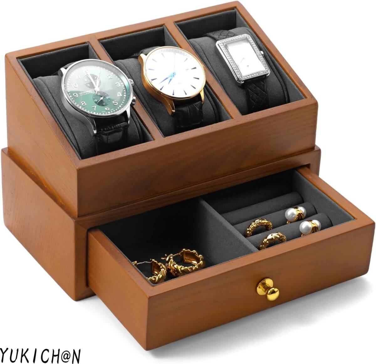 - 腕時計ケース 時計収納ボックス ダークグレー 木製 腕時計3本収納可能 アクセサリー収納 2段式 引き出し付き 持ち運び 高級 おしゃれ