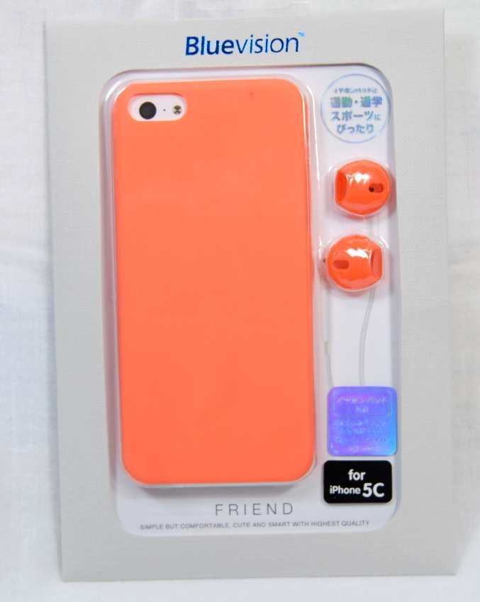 - ♣ iPhone5c◆Bluevision イアホンパッド付ハードケース Neon Orange◆985y ♣