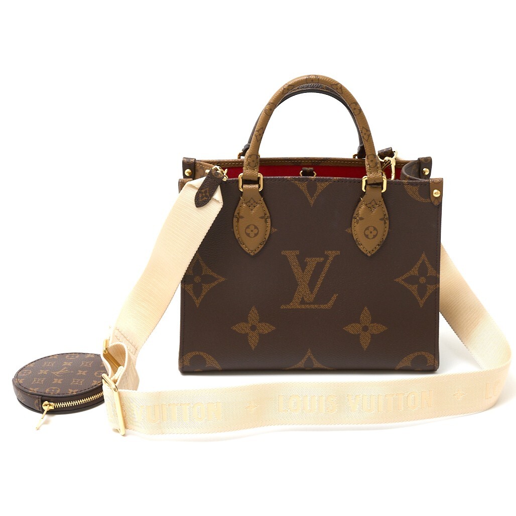 > LOUIS VUITTON ルイヴィトン オンザゴー PM M46373 ハンド ショルダーバッグ モノグラム・リバース×レザー ブラウン×ベージュ×レッド