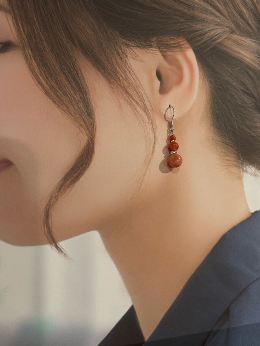 - 天然桃珊瑚 国産サンゴ 可愛いS925ピアス(851)