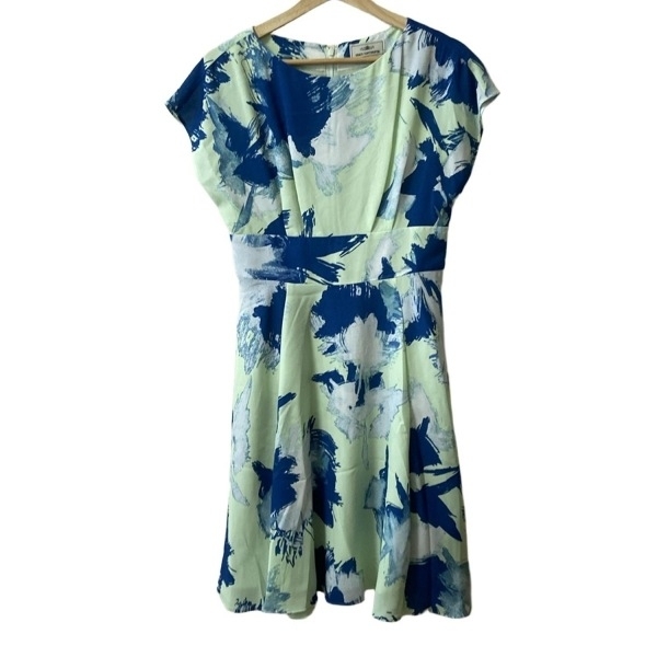 > グレースコンチネンタル GRACE CONTINENTAL サイズ36 S - ライトグリーン×ネイビー×マルチ レディース 半袖/ひざ丈/花柄 美品 ワンピース