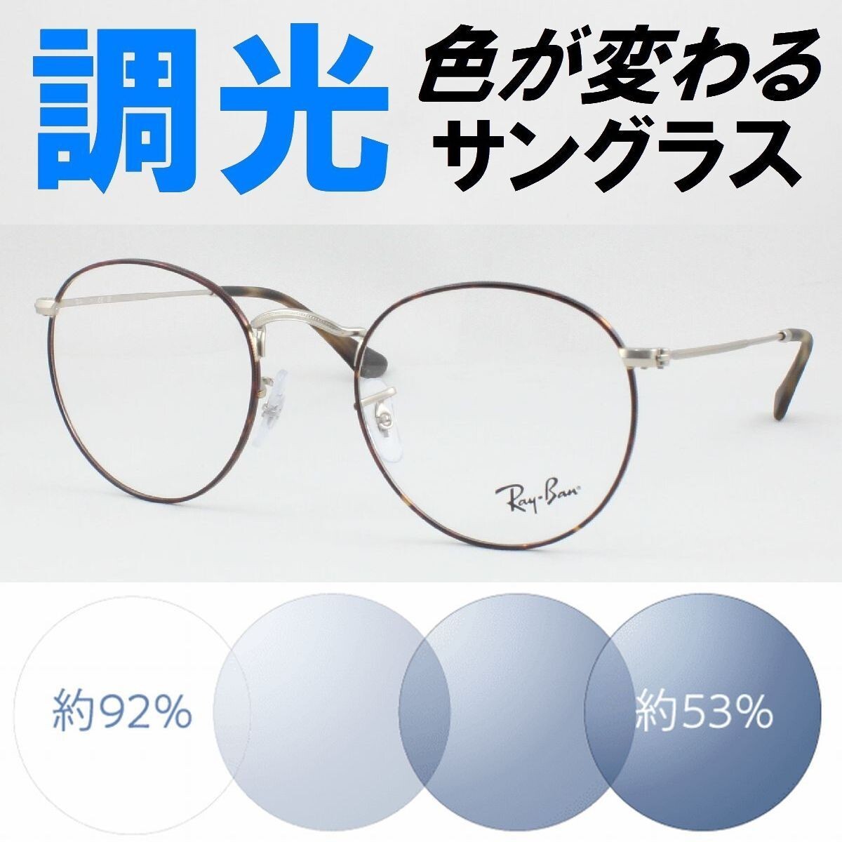 > Ray-Ban レイバン RX3447V-3194 47 ライトブルー調光サングラス 度なし 伊達メガネ UVカット ラウンドメタル ボストン 丸メガネ ラウンド