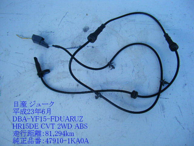 - ◆YF15 日産 ジューク H23年 右フロント ABSセンサー スピードセンサー 運転席前 47910-1KA0A 純正 [14122]