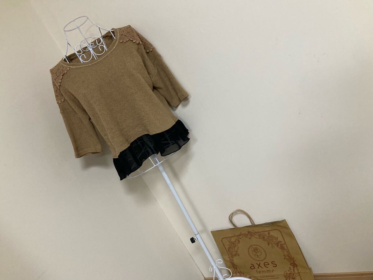 > アクシーズファム☆裾シフォン切り替えレース飾り幅広レース重ねバイカラーサマーニットプルオーバートップス☆used