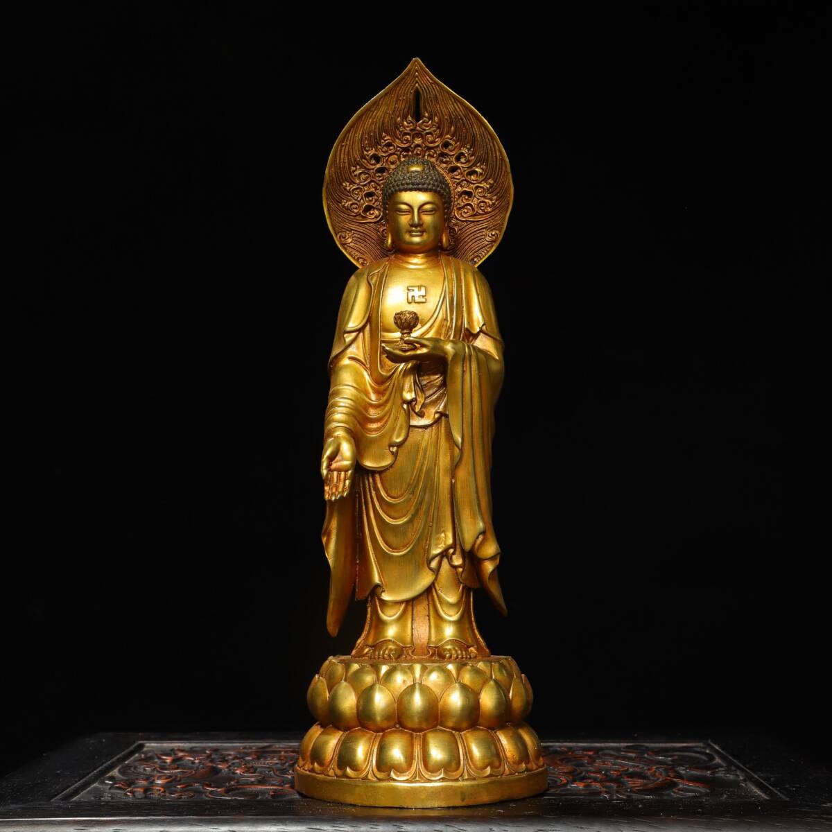 - ▽鴻▽ 銅製 塗金 阿彌陀仏 仏像 宗教 仏教古美術 供養品 古賞物 古董品 時代物 稀少珍品 中国古玩 中国古美術