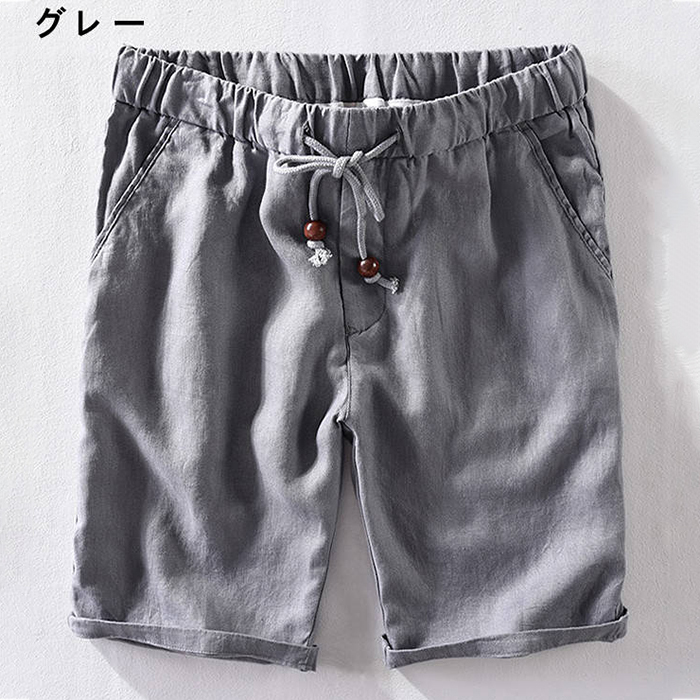 - ハーフパンツ リネンパンツ 五分丈パンツ メンズパンツ ショーツ 無地 シンプル ショートパンツ Zty-1296 グレー W34