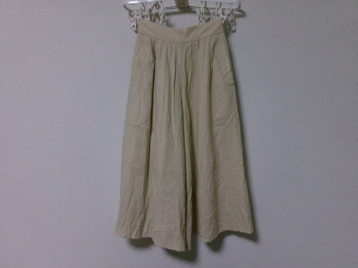 - LOWRYS FARMローリーズファーム☆アダストリア☆淡ベージュ生成りアイボリーのフレアガウチョパンツ☆ナチュラル涼しい♪麻混リネン素材☆M