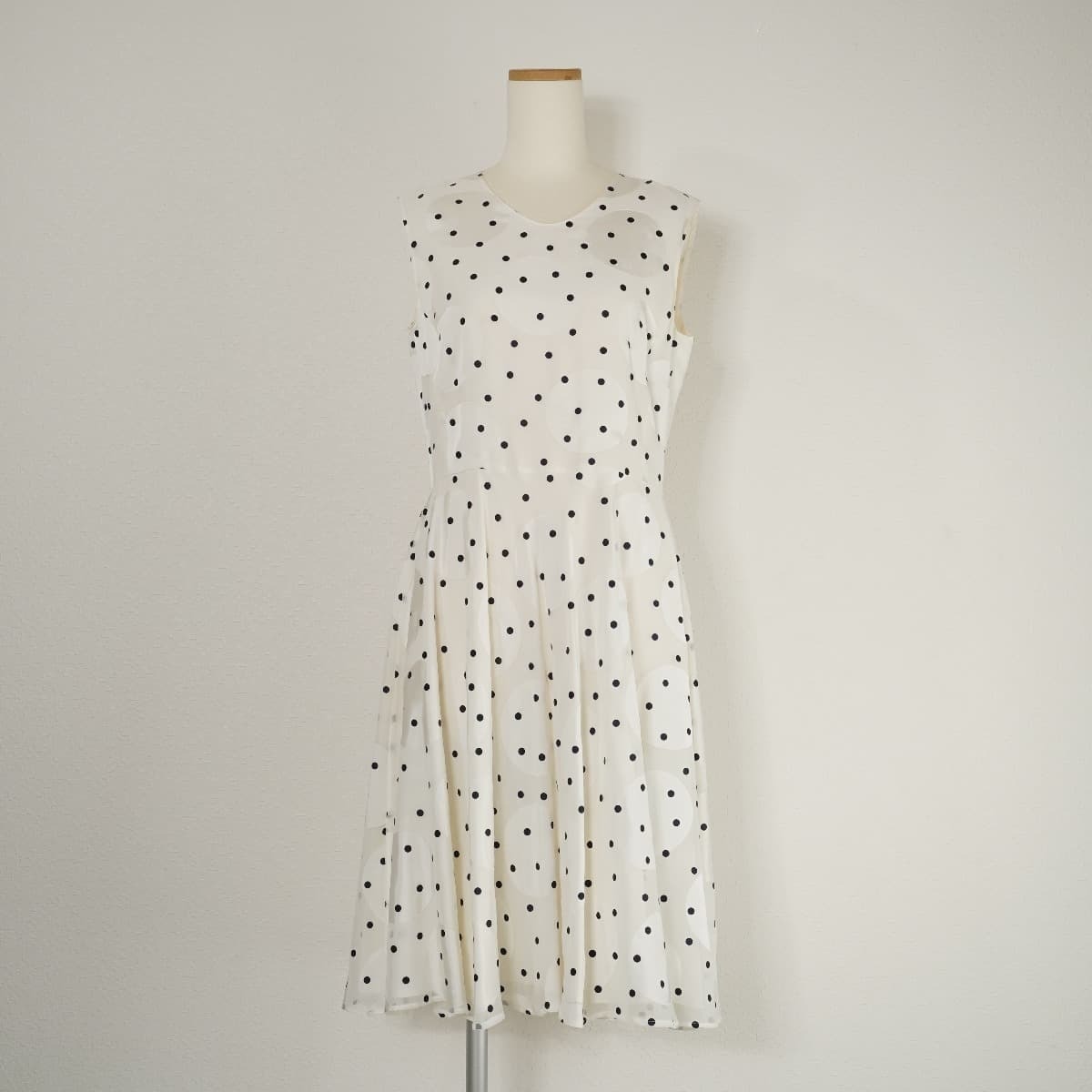 コメント:透け感のあるシアー素材のノースリーブ水玉柄ワンピース。スカートはフレアデザインです。