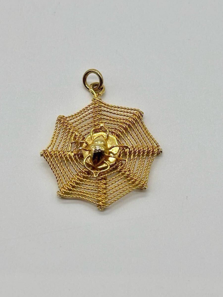 - 【美品】イギリス購入 ヴィンテージ クモの巣 14kゴールド コーティング チャーム トップ レア ラッキー モチーフ ペンダント スパイダー