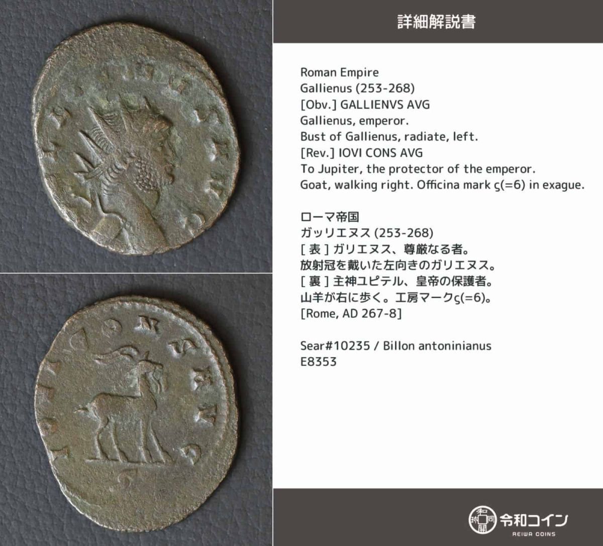 - *[令]ガッリエヌス 古代ローマコイン【詳細説明カード付】アントニニアヌス・ビロン貨 ギリシャ 銀貨[8353]7n6