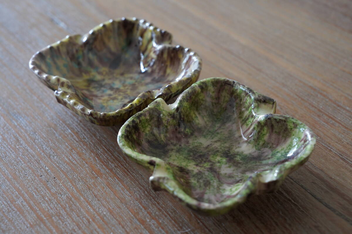 - トルコ アンティーク 手描き ハンドペイント ヴィンテージ 陶器 絵付け 器 菓子皿 菓子器 2枚セット セット