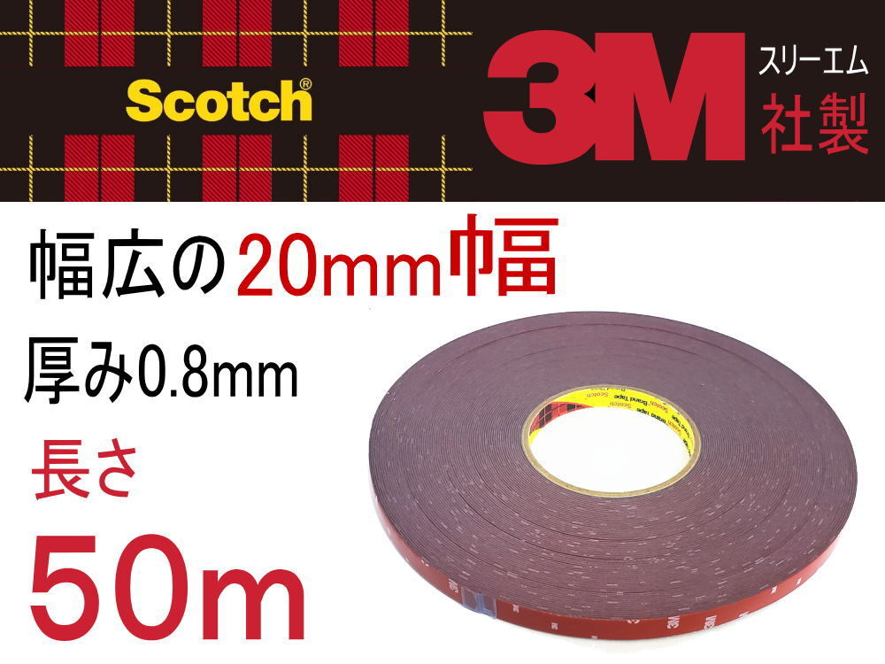 - 長さ50m 3M両面テープ 幅20mm 3M社 両面テープ スリーエム scotch スコッチ 幅20ミリ 2cm 長さ5000cm 厚み0.8mm 防水 厚手タイプ 0