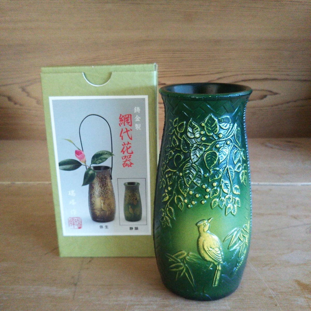 - 25071901 鋳金製 網代花器 瑞峰作 静韻 花瓶 花器 インテリア 一輪挿し 花入 花生鋳物 金製 瑞峰