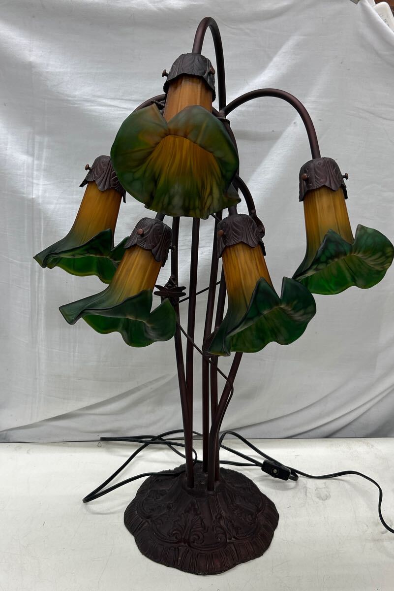 > 79★70705-⑧ スタンド ランプ ガラス 5灯 2000年製 インテリア オブジェ アンティーク 点灯確認済み キズ 汚れ あります ジャンク品扱い
