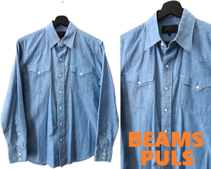 - BEAMS PLUS:ビームスプラス■シャンブレー ウエスタンシャツ/長袖シャツ■サックスブルー■Ssize■BEAMS+