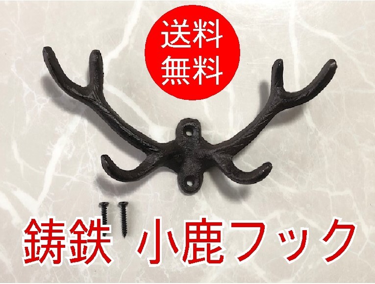 - 【鋳鉄】小鹿フック 壁掛け アンティーク 収納フック キーフック 園芸 道具整理 ハンガーフック 壁面 帽子掛け 鍵