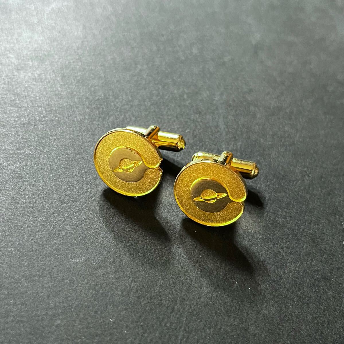 - カフスボタン カフリンクス カフス 丸型 メンズ アクセサリー 結婚式 ビジネス フォーマル ゴールドカラー 土星 紳士